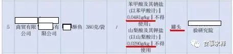 近日,某省市场监督管理局公布了一则食品安全监督抽检不合格信息,某食品企业生产的袋装酥鱼产品检出苯甲酸及其钠盐(以苯甲酸计)0.0481g/kg,山梨酸及其钾盐(以山梨酸计)0.0290g/kg,产品不合格。