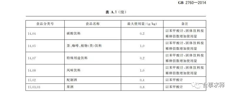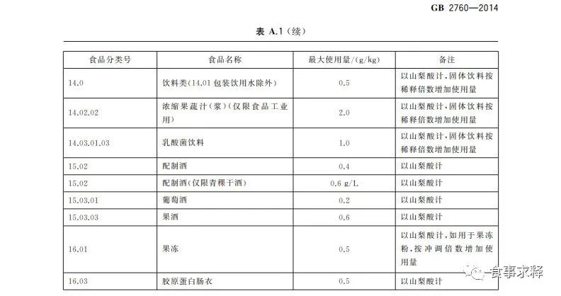 GB 2760-2014《食品安全国家标准 食品添加剂使用标准》(以下简称GB 2760-2014)规定了允许使用的食品添加剂品种、每种食品添加剂允许使用的食品类别及在食品类别中的最大使用量。