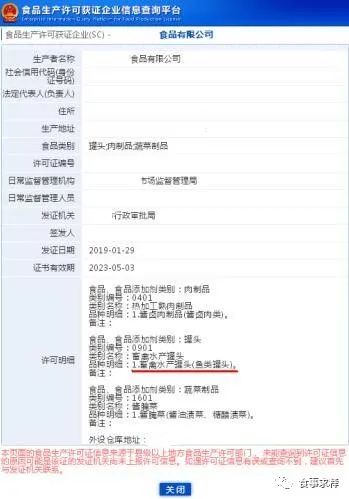 (2)国家市场监督管理总局网站食品生产许可获证企业信息查询平台查到的酥鱼产品生产企业食品生产许可证信息截图。企业食品生产许可证许可明细是畜禽水产罐头(鱼类罐头)。