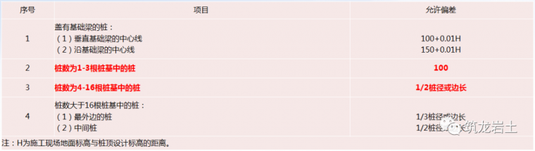 预应力管桩桩的桩位偏差,必须符合表1的规定。斜桩倾斜度的偏差不得大于倾斜角正切值的15%(倾斜角系桩的纵向中心线与铅垂线间夹角)。