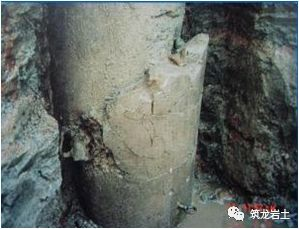 沉桩过程中,桩身弯曲过大而断裂。如桩制作质量造成的弯曲,或桩细长又遇到较硬土层时,锤击产生的弯曲等;