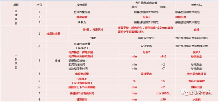 注:①表1、2、3、4选自GB50202《建筑地基基础工程施工质量验收规范》其中个别数据依据JGJ94《建筑桩基技术规程》做了相应调整;②表中“基桩检测技术规范”参见JGJ106《建筑基桩检测技术规范》。1、单桩竖向承载力检测