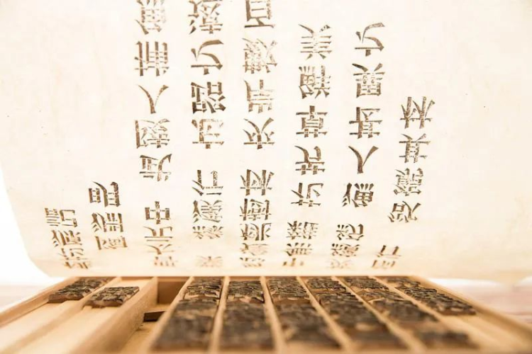 在格子架的字模中找到自己需要的字,然后在特制的模具中进行排版,再在排版好的文字上刷上黑墨,覆盖上宣纸,用碾子在纸上碾压一遍,让墨水附着在纸上,翻开宣纸,一张活字印刷的作品就完成了,印完后再将字模拆出,留待下次排印时再次使用。
