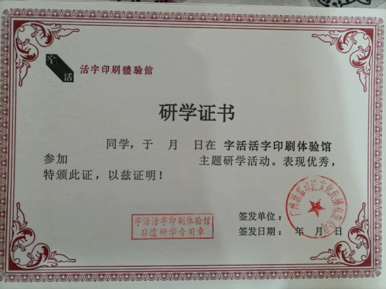 2、材料费:课程所需个人材料及成品费用(活字印刷书签DIY,研学证书)