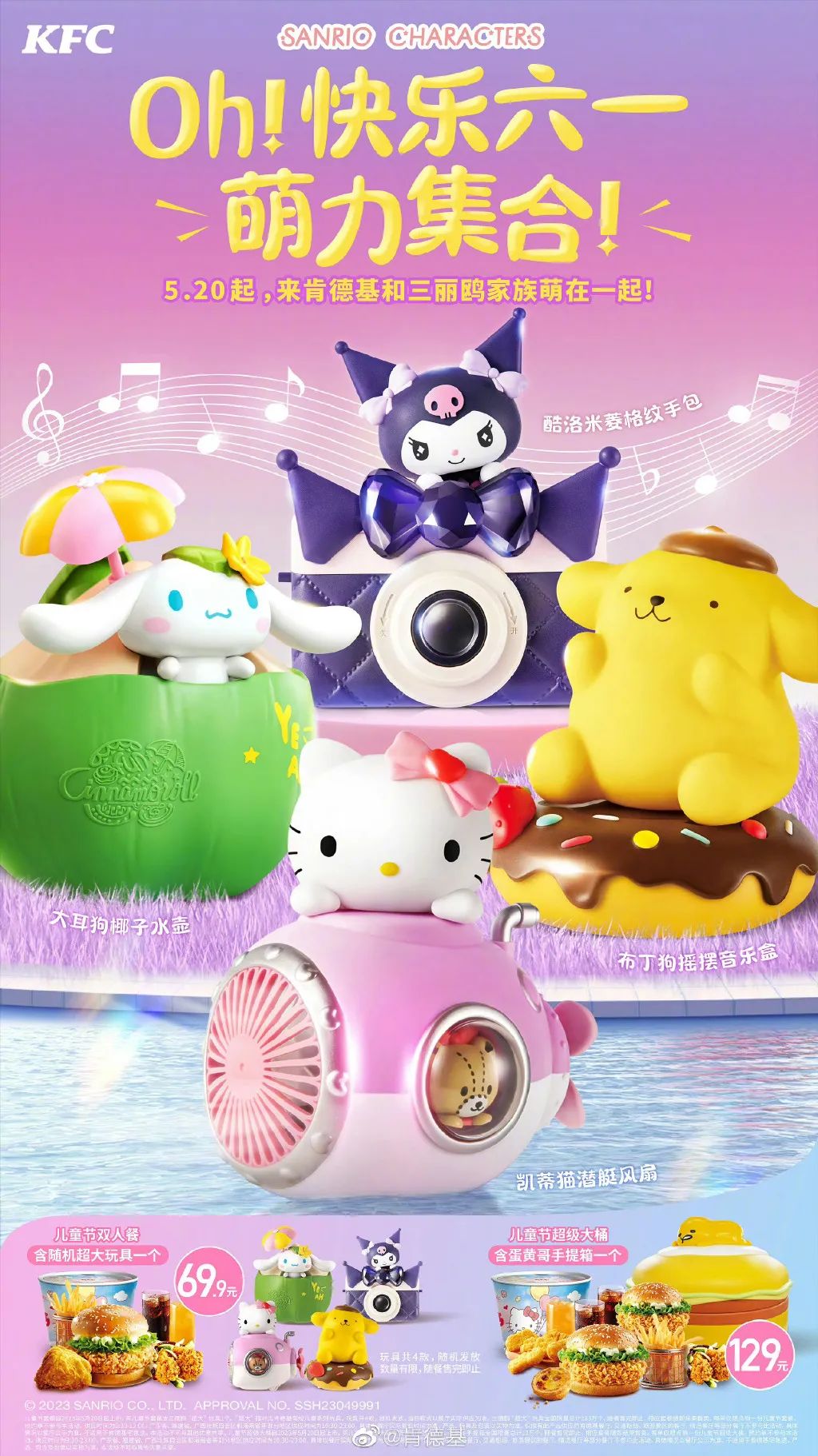 原来肯爷爷也有一颗童心呀,六一,肯德基和三丽鸥一起萌出天际,你别说,KFC真的是懂流量密码的哈!