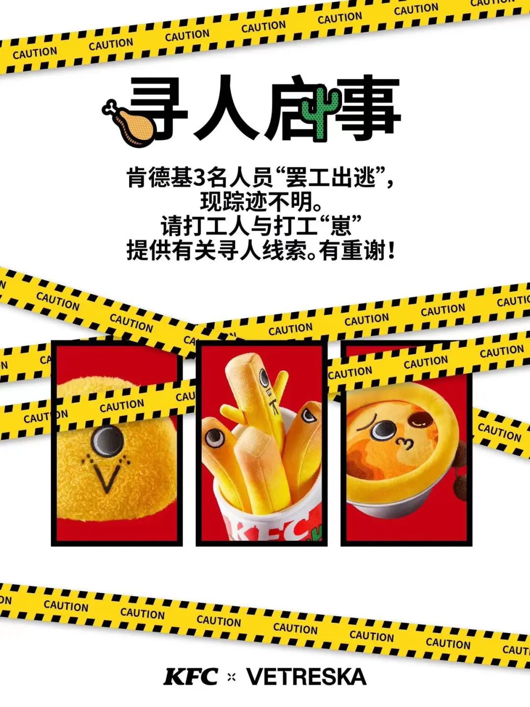 今年6月,肯德基与未卡再次联手,为打工人与打工“崽”放送魔性快乐,推出了联名趣味玩具。「溜了溜了炸鸡宠物玩具」见机行事,随时开溜。到点!下班!上发条!蓄力!冲刺!「来回拉扯蛋挞宠物玩具」拉扯一回动一下,打工就要认真地敷衍。「说摆就摆薯条电动宠物玩具」在摆摊和摆烂中选择了“我最摇摆”。果然打工人哪有不疯的呀!