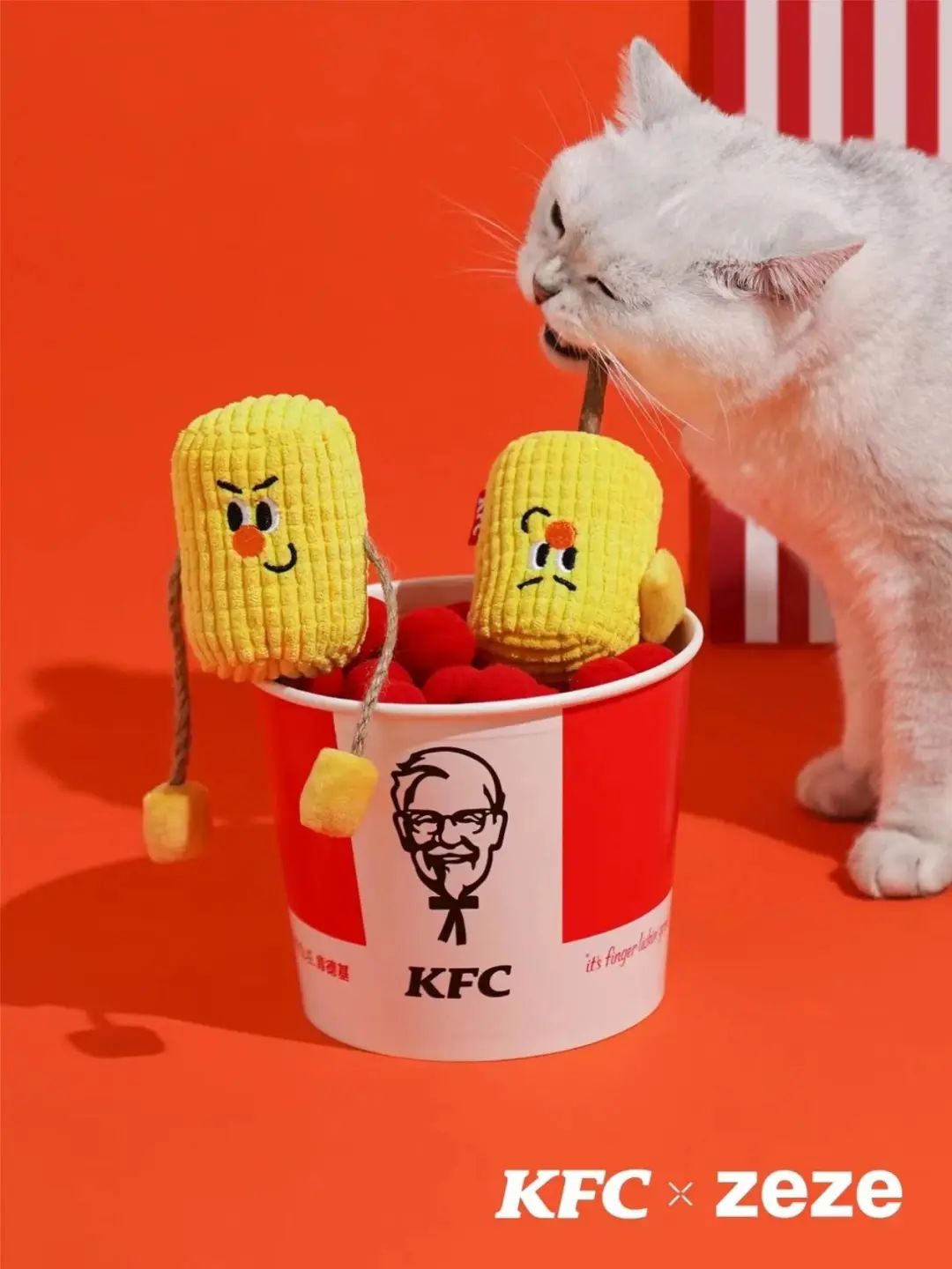 其实7月份肯德基就和zeze一起给毛孩子们准备了磨牙棒哦!铲屎官们有玩具,又怎么能忘了崽崽们呀~美味的肯肯玉米棒,是肯德基经典玉米棒造型的木天蓼玩具。强壮的玉米兄弟,磨牙洁齿,滋滋美味口气清新。