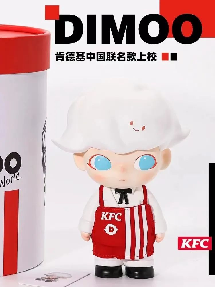 最后就不得不提一下肯德基的老朋友泡泡玛特啦,经常时不时和肯德基联名一下子,给我们送惊喜。去年是肯德基35周年,与泡泡玛特梦幻联动制作了plus大娃,质感简直不要太棒棒。手握玫瑰,这就是我的Dimoo求婚男友。上得厅堂,下得厨房,穿上衣服是KFC大厨,脱下衣服就是我的西装男友。联名收益还用作了捐款做公益,买娃的同时也很有意义捏~