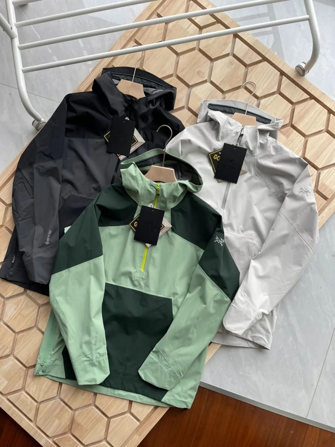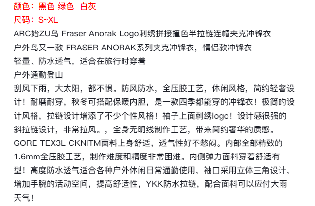 【全压胶工艺 休闲风格 简约轻奢设计】拼接撞色半拉链连帽夹克冲锋衣