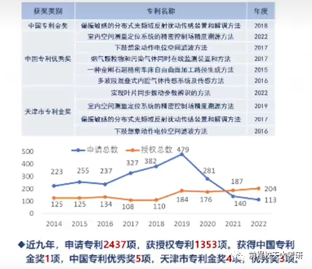 近九年,申请专利2437项,获授权专利1353项。获得中国专利金奖1项,中国专利优秀奖5项,天津市专利金奖4项,优秀奖3项。