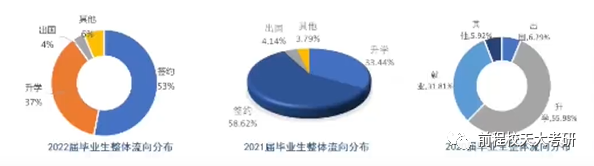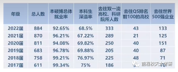 本硕博就业率维持在较高的水平,出国深造和去往世界五百强企业的比例也维持在高位。