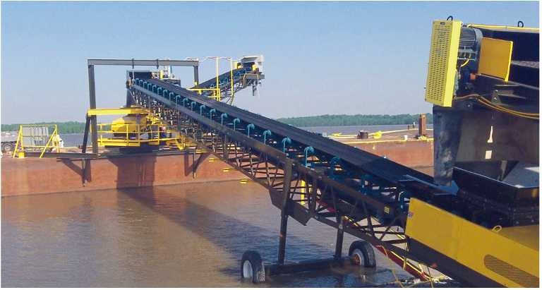 大倾角带式输送机主要用于散装 物料的大倾角连续输送,釆用具有波 状挡边和横隔板的输送带,输送倾角为 0~90 度。Corrugated ribbed belt conveyor is mainly used for continuous conveying of large angles of bulk materials, adopts a conveyor belt with corrugated ribs and transverse partitions, and the conveying inclination angle is 0 to 90 degrees.移劫带式输送机 Mobile Belt Conveyor