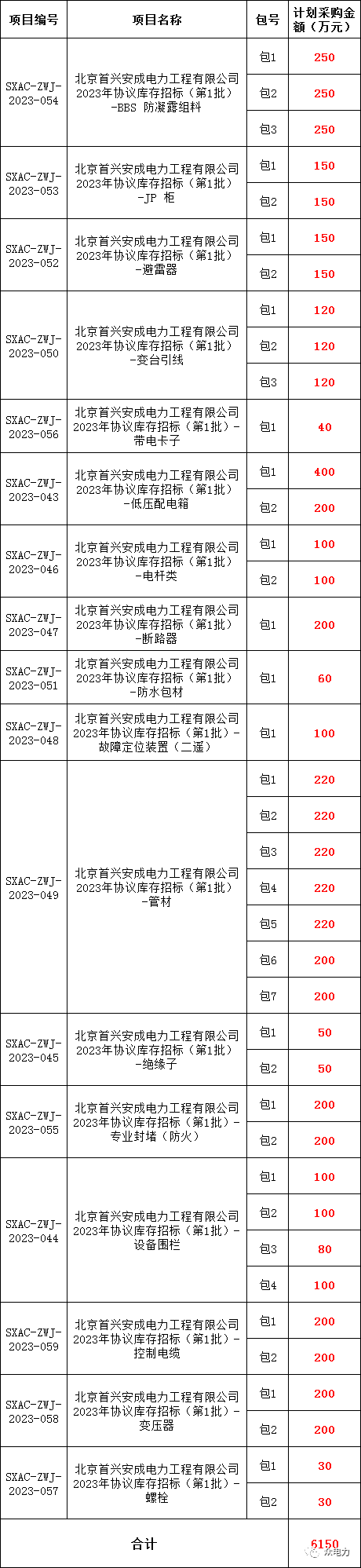 【6000万招标汇总】北京首兴安成电力公司2023年(第1批)物资协议库存招标