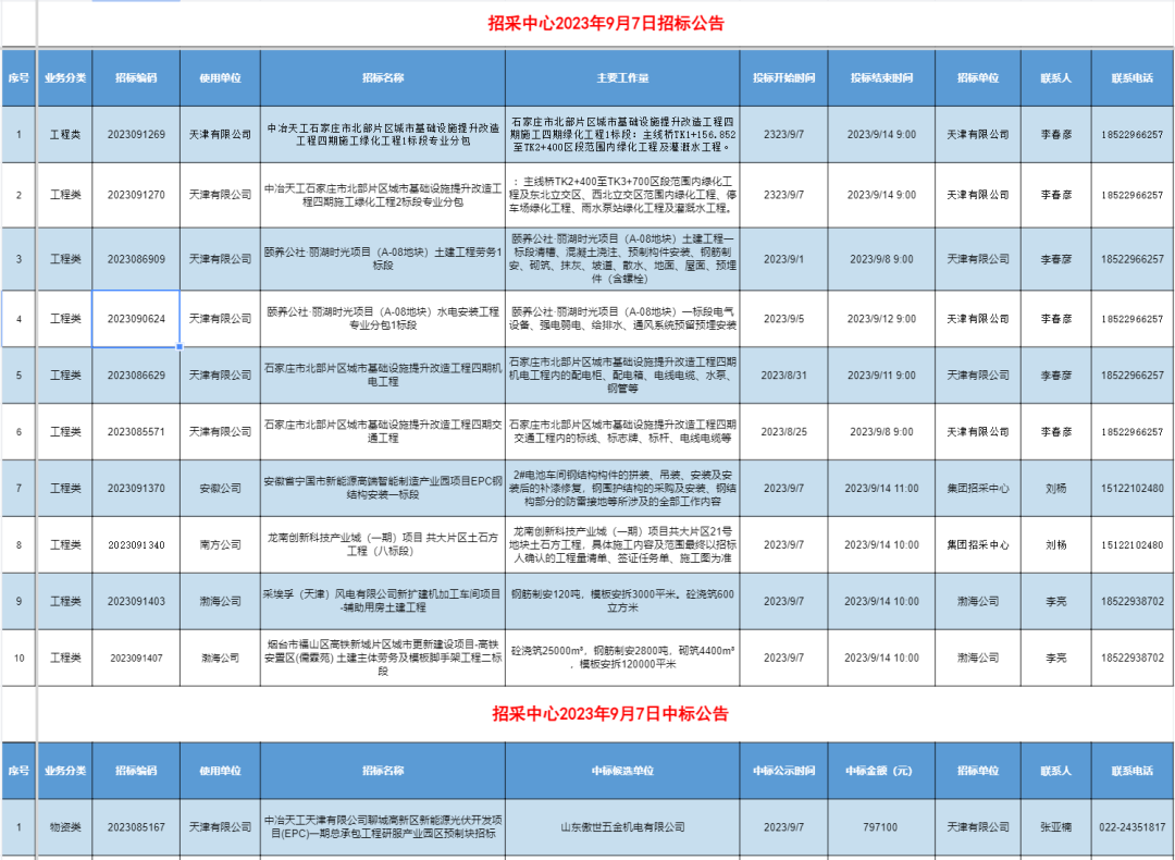 中冶天工招标采购中心对近期的工程项目进行招标,现诚邀分包商、供应商欢迎参与投标(分包、物资在一个图片内,请注意业务分类)。
