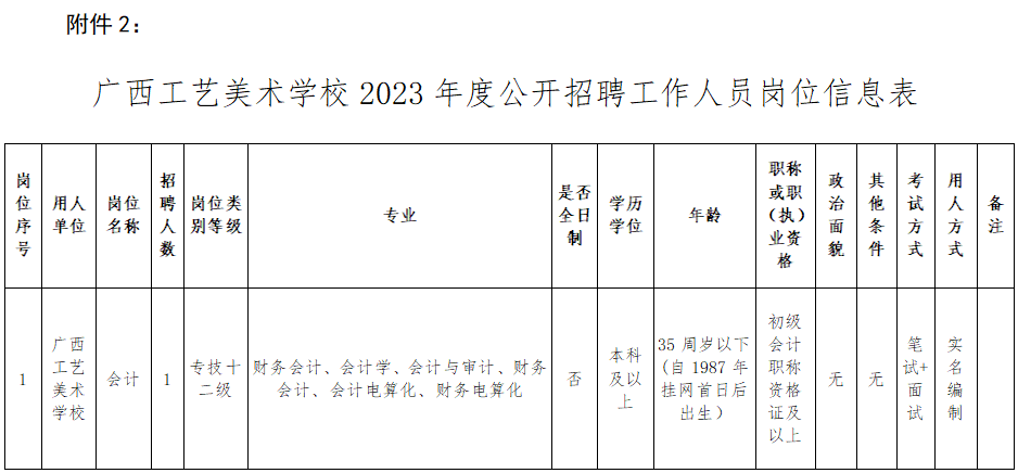 附件2:广西工艺美术学校2023年度公开招聘工作人员岗位信息表