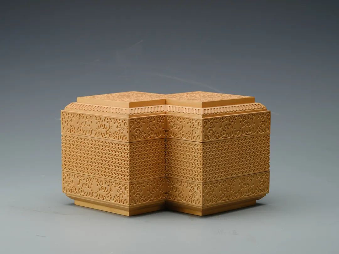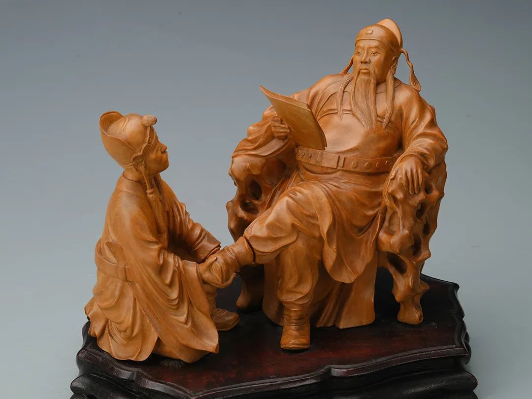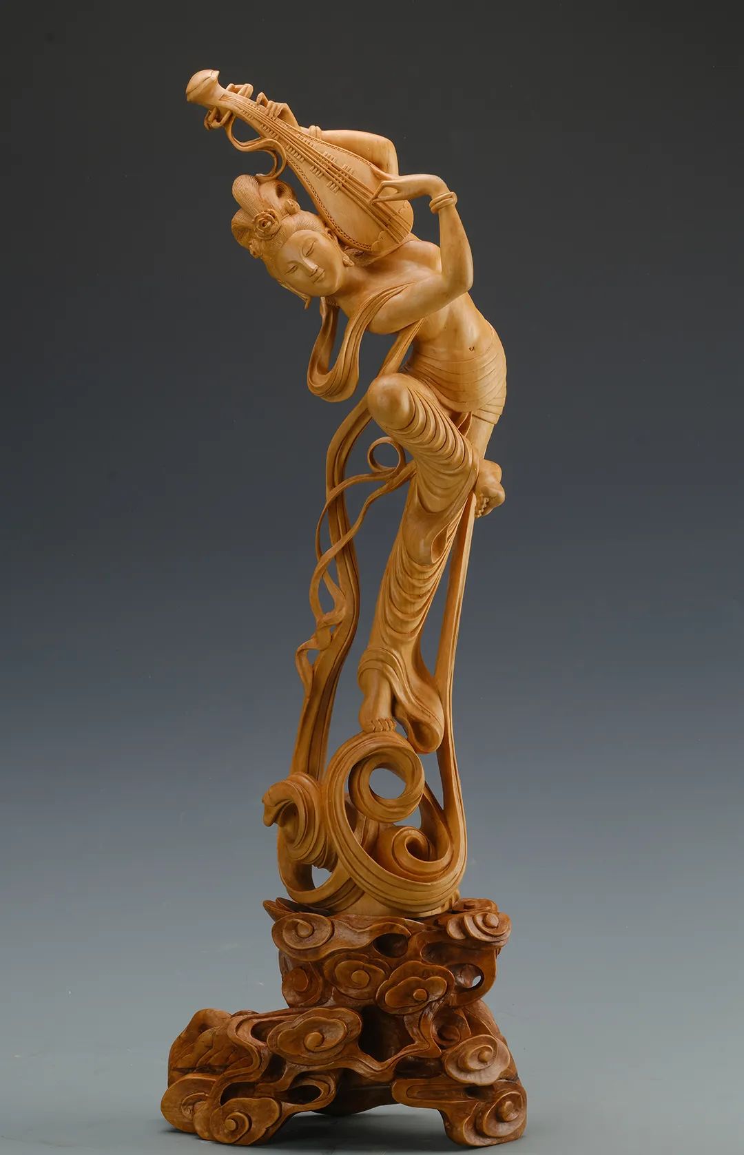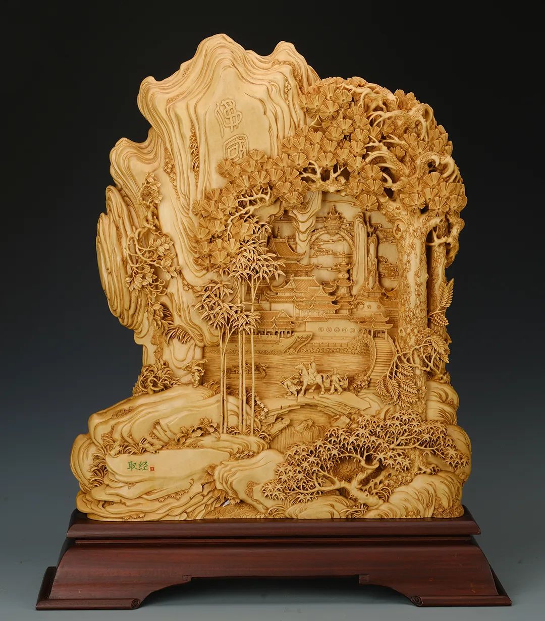 黄杨木雕是以黄杨木为材料的一种观赏性的圆雕艺术。黄杨木雕由于材料的肌理与人物的肤色十分接近,创作上受文人画造型风格的影响,所以雕刻的人物形神兼备,达到了天人合一的自然展露,刻工细腻精美,堪称“鬼斧神工”。