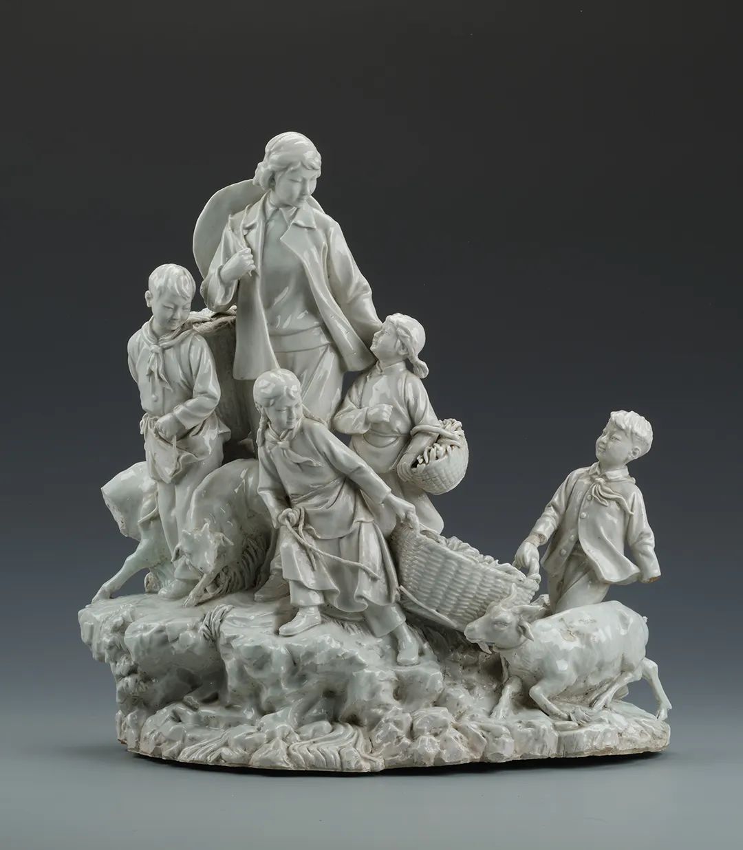 瓷塑是瓷器家族中相对小众的一个品类,也是陶瓷工艺传承发展的历史见证。与普通瓷器通过胎、釉、彩绘的装饰来表达艺术美不同,瓷塑是以展示丰富而生动的造型之美为旨归,故在设计上具有更多的美学元素,有着极强的艺术感染力。