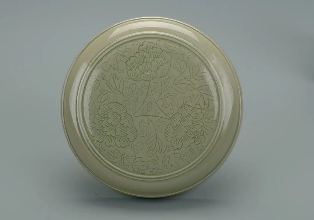 现代越窑青瓷粉盒“牡丹" 嵇锡贵