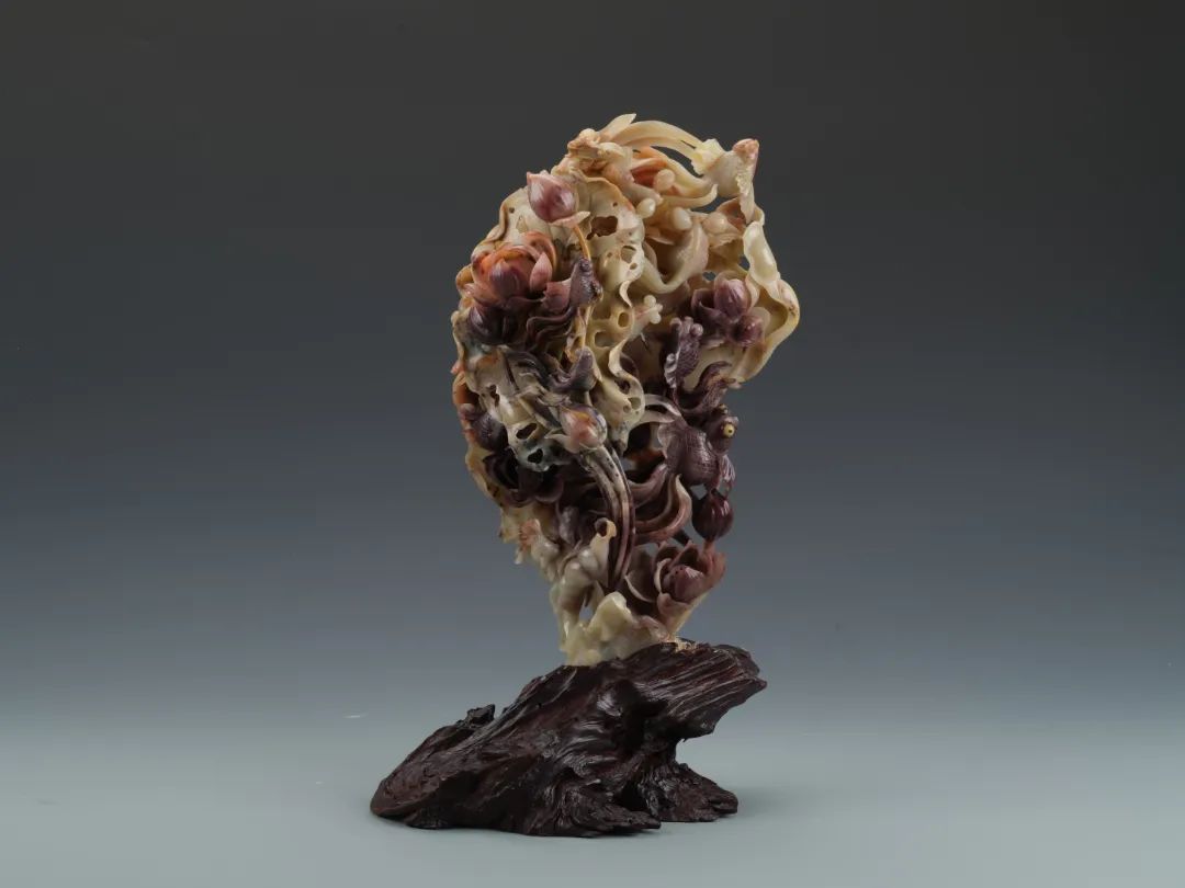 浙江石雕主要有青田石雕、温州石雕、泰顺石雕、昌化石雕等种类。其原材料质地温润、色彩丰富、纹理奇特。作品因材施艺、依色取俏、雕工精细、层次丰富,在表现内容和艺术风格上,富有浓厚的江南色彩。