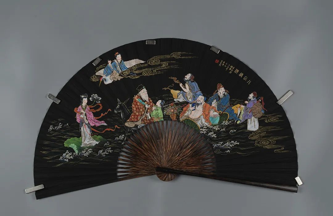 现代全棕真金黑纸扇“八仙过海图” 赵平加