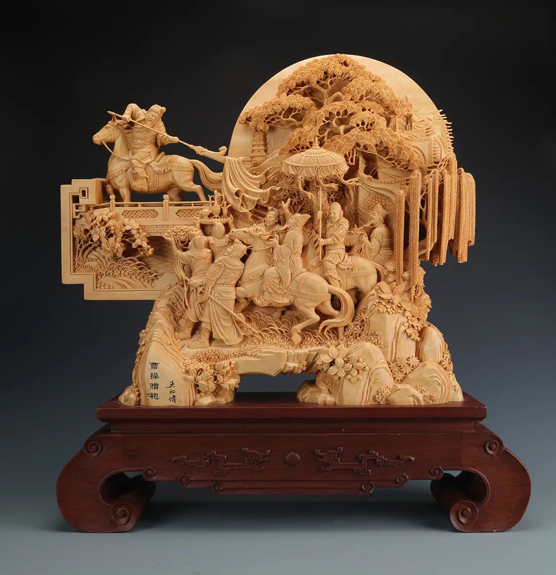 现代东阳木雕“曹操赠袍”台屏 吴初伟、吴航程