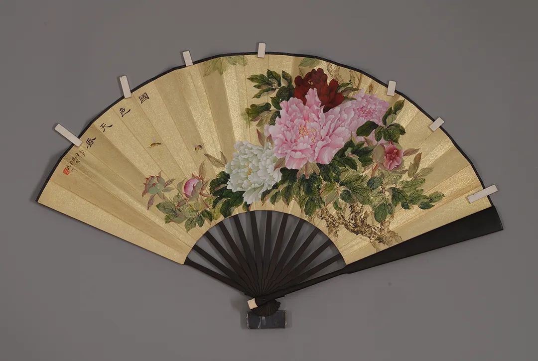 现代工笔画乌木扇“国色天香” 刘瑞芬