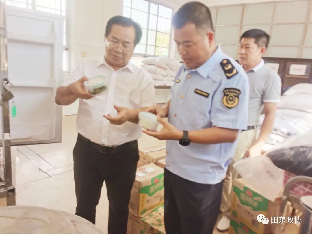 为切实保障好秋季开学校园食品安全,近日,田东县政协副主席黄智在到祥周镇布兵小学开展食品安全卫生检查,县市场监督管理局相关负责同志陪同检查。