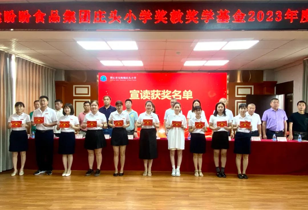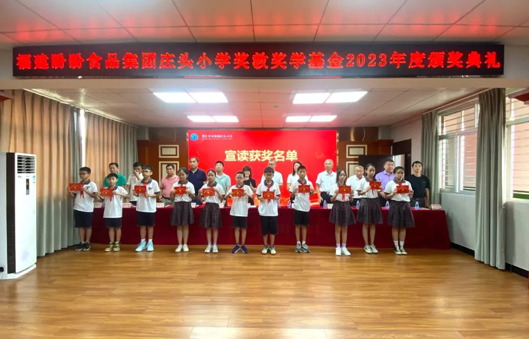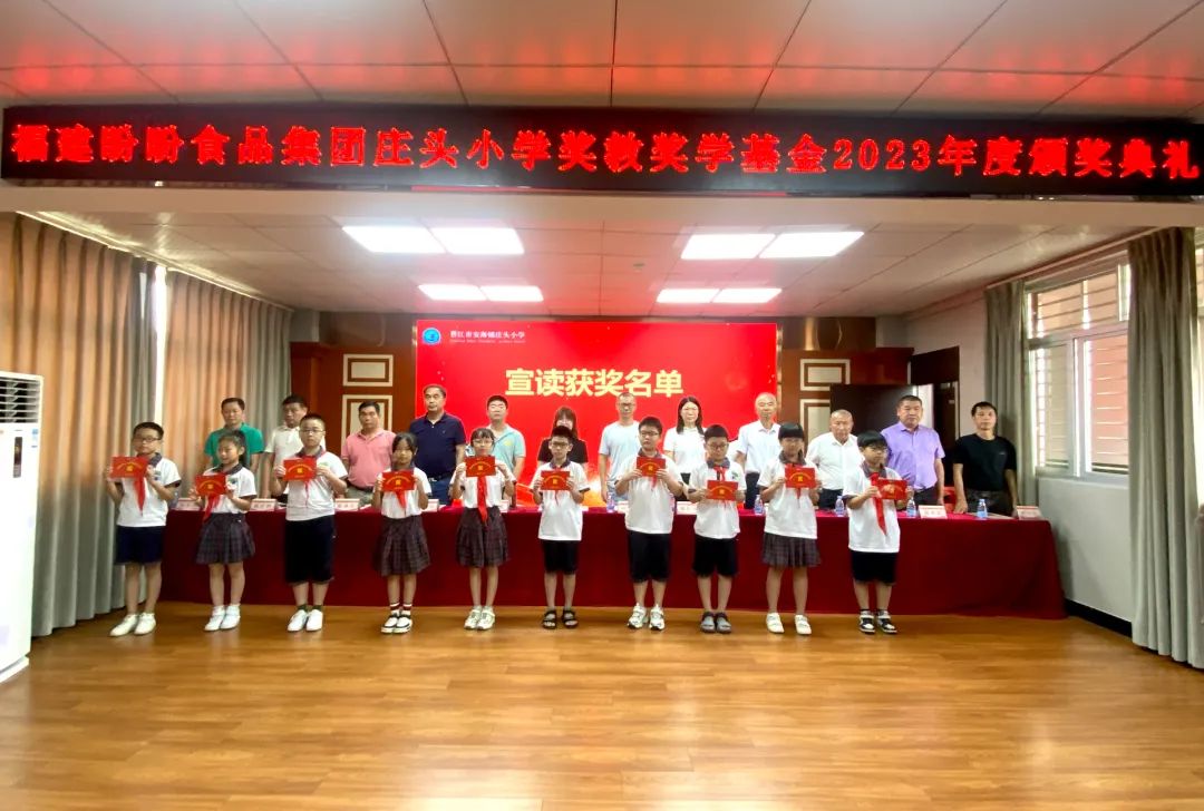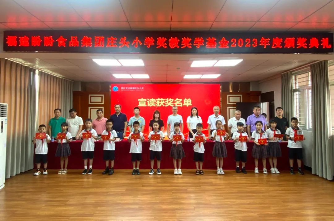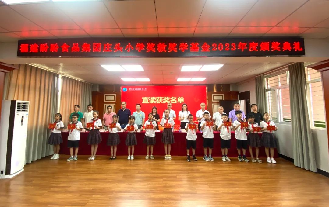 佳绩不负磨砺苦,奋斗终尝硕果香。2022至2023学年度,是庄头小学丰收的一年,这支充满活力的团队,努力拼搏,今天,有676位师生获得“福建盼盼食品集团庄头小学奖教奖学基金”,奖金总额高达13.695万元,创造了2022~2023学年度累累的硕果。庄头小学许保全教导宣读获奖名单。