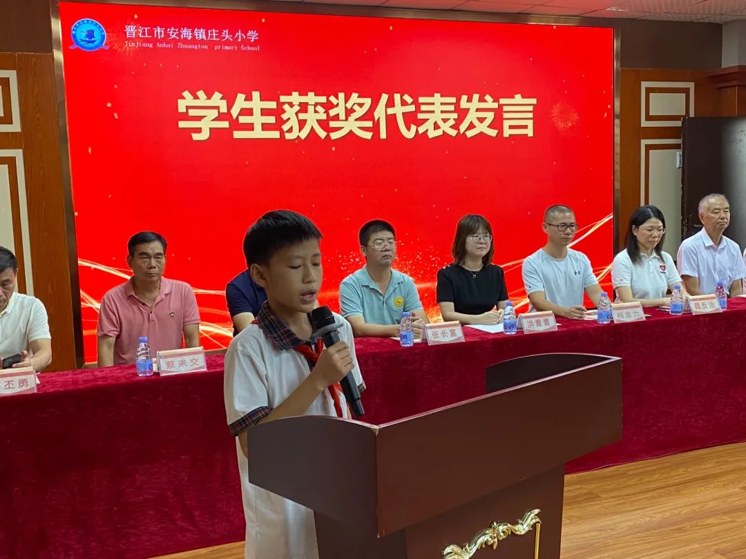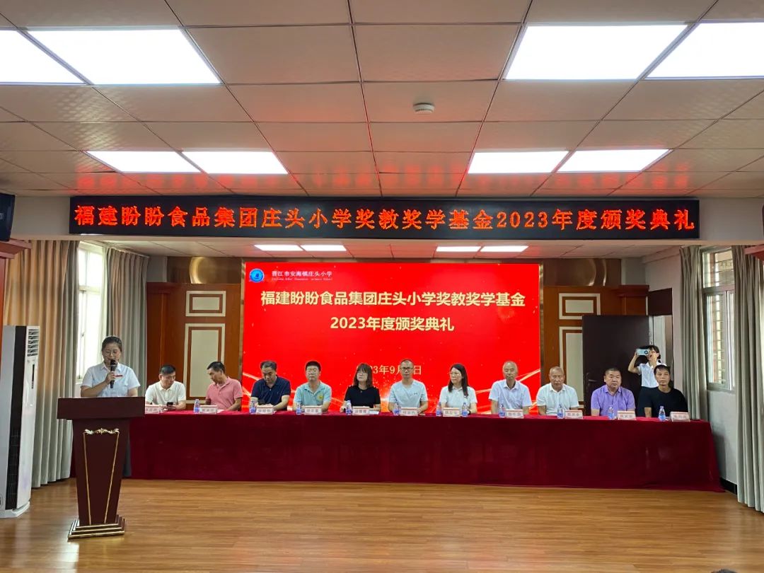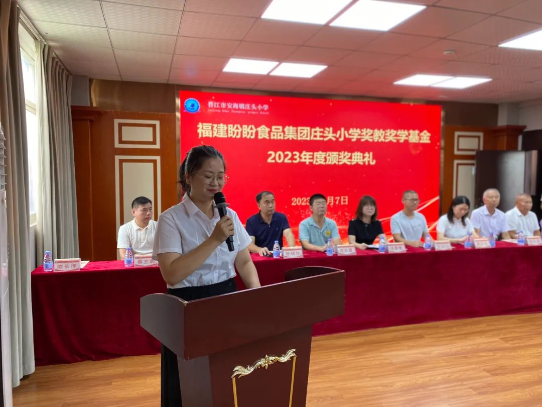 安海镇常务副镇长柯志力先生、安海镇宣传委员洪青青女士、盼盼食品集团财务总监魏反治女士、桥头点点长张长富先生、安海镇教育中心主任张铭华先生、庄头小学校董会领导、庄头村、前蔡村、下山后村、前林村等村党支部书记、家委会代表、庄头小学师生代表共100多人参加了颁奖典礼。会议由庄头小学王安妮老师主持。