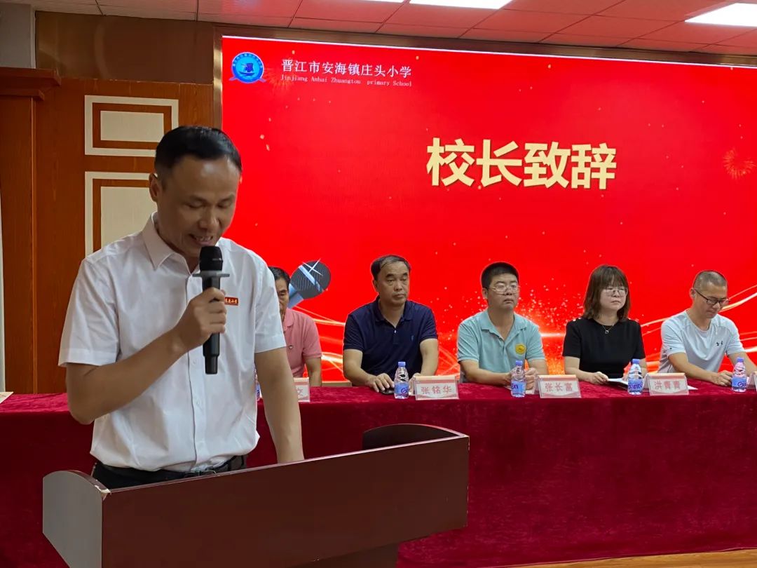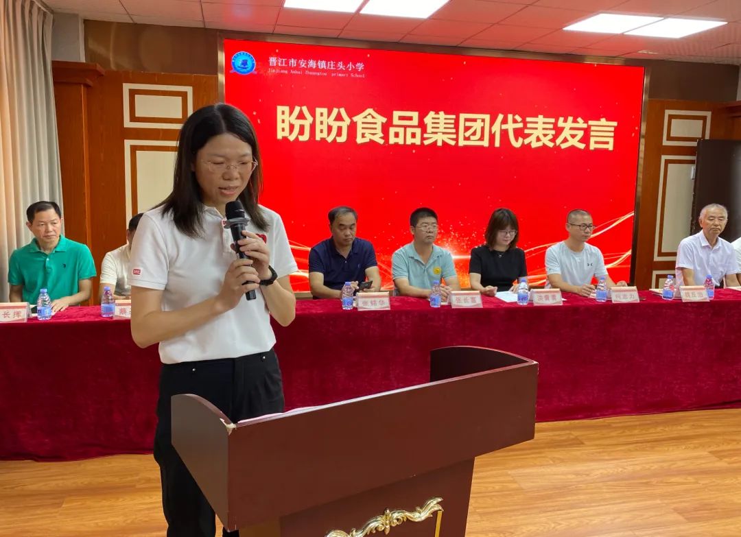 最后,安海镇常务副镇长柯志力先生作总结讲话。他表示“福建盼盼食品集团庄头小学奖教奖学基金”的设立,是一种美丽善行的传扬与延续,正因为有盼盼食品集团蔡金垵董事长这种尊师重教的精神带领,安海才涌现出一大批热心教育支持教育的社会贤达。希望在座各位嘉宾能够发扬盼盼食品集团和蔡金垵董事长热爱教育的精神,继续为庄头村、前蔡村、下山后村、前林村教育发展及“学在安海”教育品牌贡献一份力量,相信庄头小学办学水平将更上一台阶。