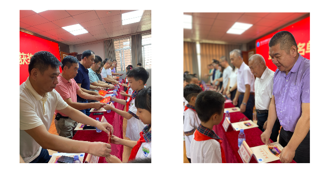 1.与会嘉宾为庄头小学获奖同学颁发奖学金。