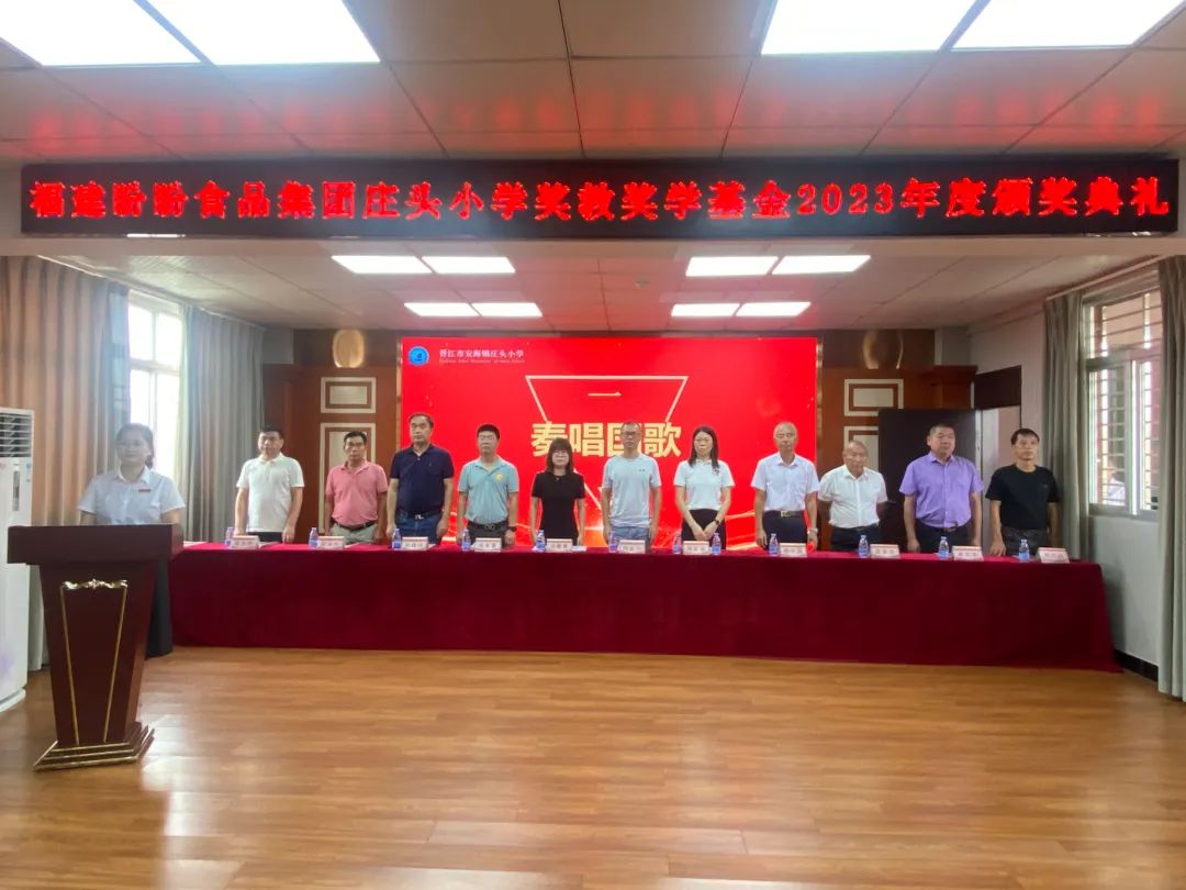 蔡荣鑫校长表示,盼盼食品集团历年来一直热心家乡教育事业,捐建庄头小学盼盼教学楼一幢和人行天桥一座等等,为家乡学子创建优质的学习环境和安全环境。今年6月,盼盼食品集团秉承“教育强则国强,少年强则国强”的信念,为进一步激发教师的教育教学热情和桑梓学子的学习积极性,培养家乡有用人才,特捐资150万元设立“福建盼盼食品集团庄头小学奖教奖学基金”,表彰庄头小学优秀师生。庄头小学师生屡创佳绩,成绩的取得,既凝聚了全体师生的共同努力,也离不开以蔡金垵董事长为代表的社会各界贤达的支持和关怀。
