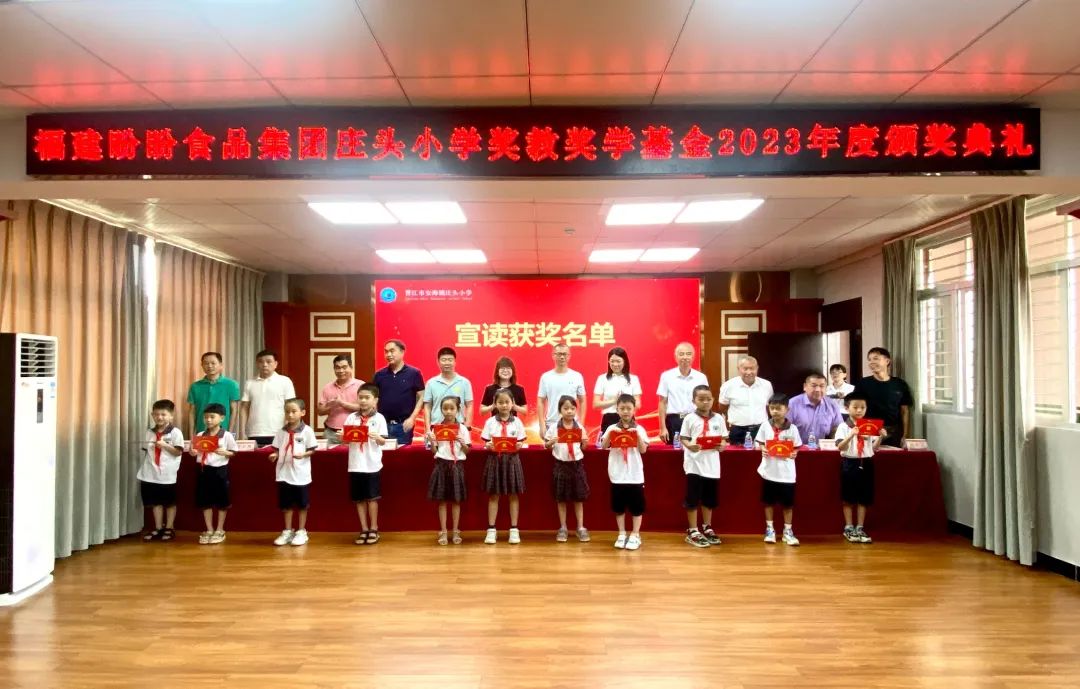 9月7日上午,“福建盼盼食品集团庄头小学奖教奖学基金”颁奖典礼在庄头小学隆重举行,本次颁奖典礼上共计表彰优秀师生676名,发放奖教奖学金共计13.695万元。