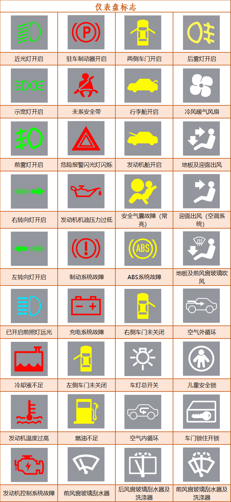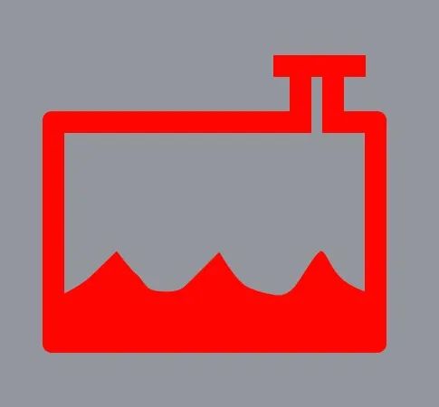 这个仪表标志,下面的波浪线就像是一个液体液面,可以记住就是冷却液的标志。水箱都被烧红了,代表是冷却液不足,温度过高,需要添加冷却液了!