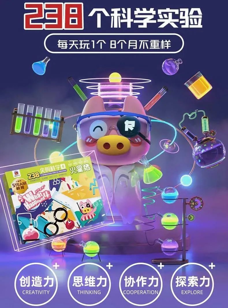内含238个科学实验,涉及物理化学相关,每天1个玩半年不重样,平均每个实验才不到5毛钱,性价比真是tai高啦~