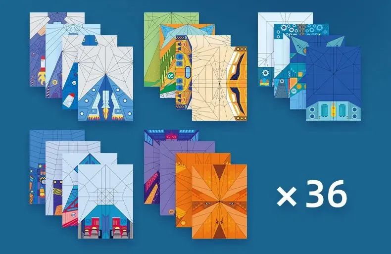 每款有3张折纸,共36张折纸,孩子能和自己小伙伴一起体验各种款式纸飞机的快乐。