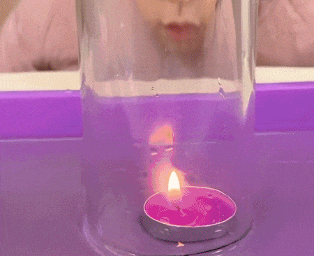 原理:杯子扣在蜡烛上,杯子里的空气变热膨胀就会溢出杯外,杯中的氧气耗尽,蜡烛熄灭之后杯中的空气冷却,气压下降。
