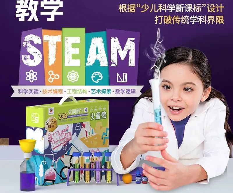 整套实验融入了STEAM教育理念,让孩子提升动手和动脑、团队协作、沟通等综合能力。