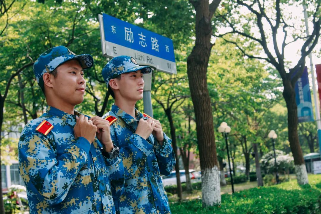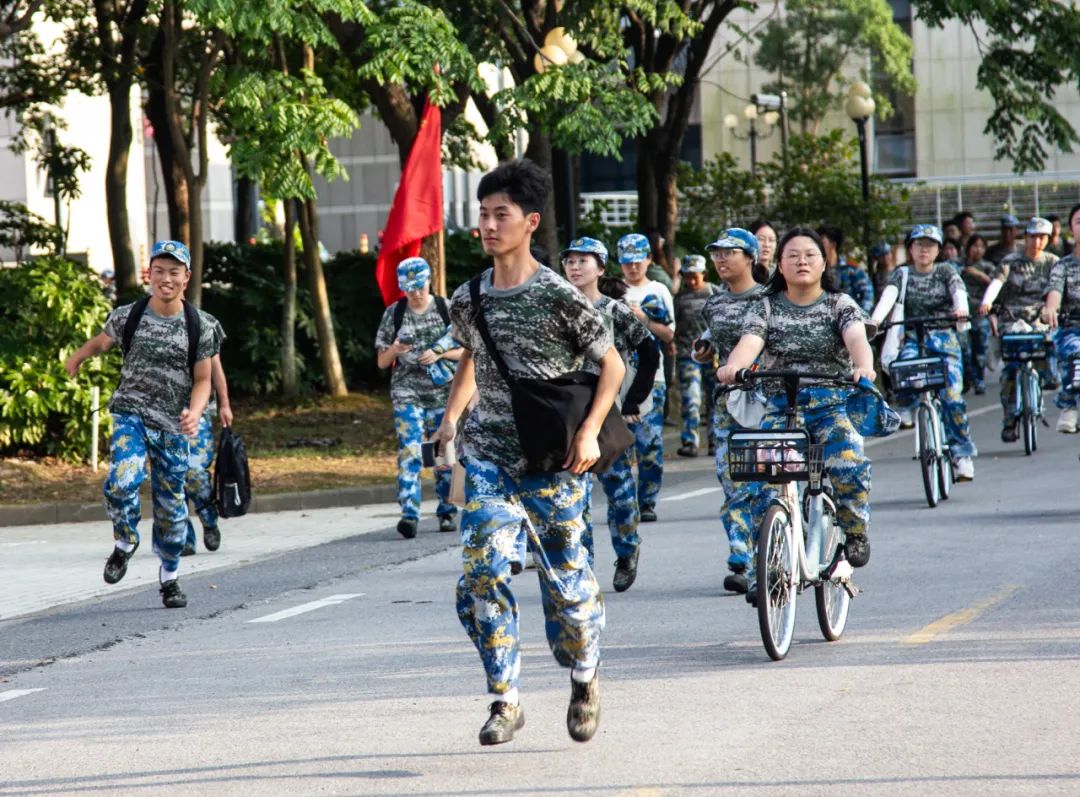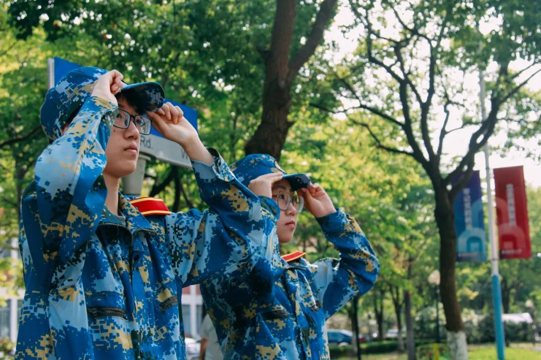 在训练场上,身着迷彩的同学们一改往日稚气,像军人一样带着满腔热血,目光坚定,直视前方,他们挺拔笔直地站着。纵然骄阳似火、身心疲惫,纵然挥汗如雨、脚似灌铅,他们依旧昂首挺胸、军姿飒爽。这一站,他们直面骄阳风雨,下一站,他们收获的便是绚烂的彩虹。