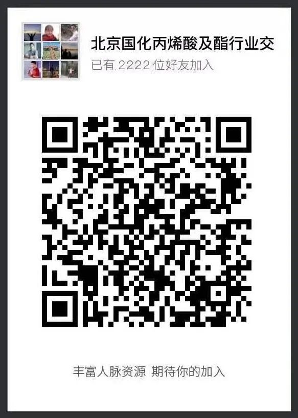 扫描下方二维码,加入“丙烯酸及SAP、甲基丙烯酸甲酯行业通讯录”,交流更多行业信息。