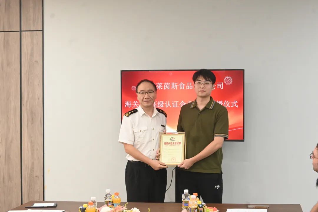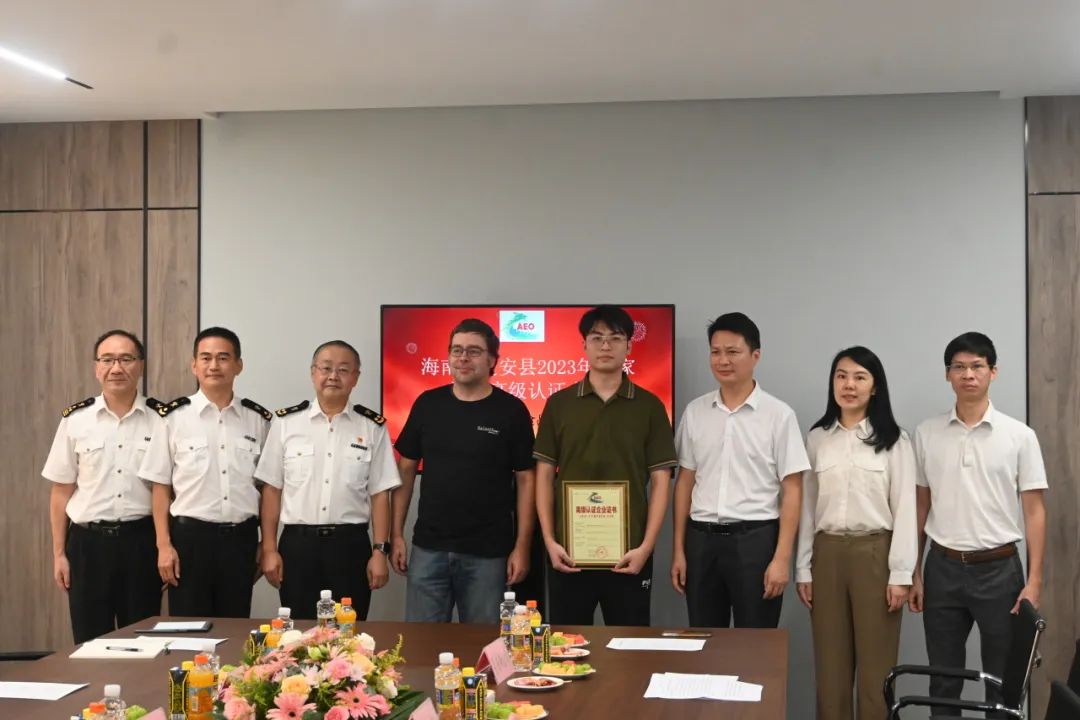 会上,海口海关为通过海关AEO高级认证的海南莱茵斯食品有限公司颁发了认证证书。海南莱茵斯食品有限公司成为定安县首家获得海关高级认证的企业。