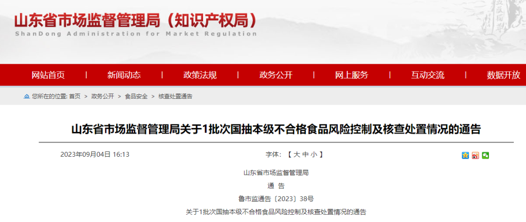 关于1批次国抽本级不合格食品风险控制及核查处置情况的通告