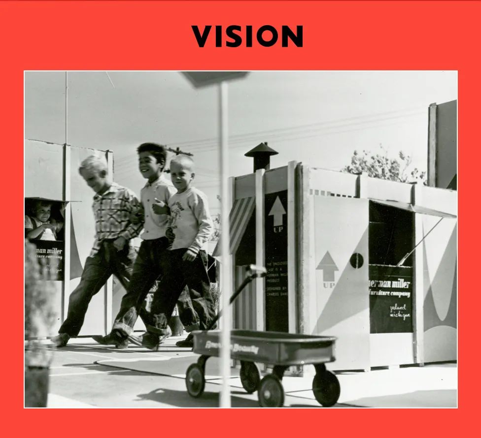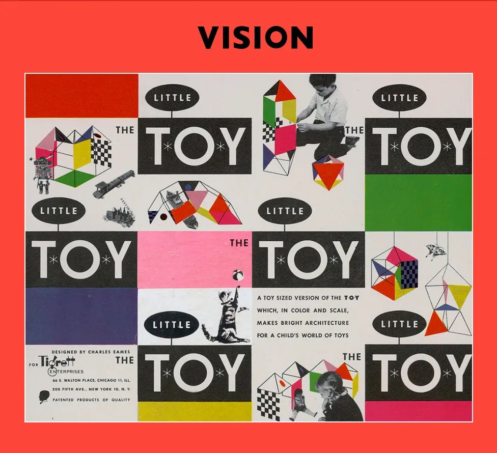 20 世纪中期,因为欧美童工法的改进,让孩子们拥有了更多玩耍的时间,并激发了人们对于如何满足儿童玩乐需求的兴趣。引领现代设计风格的查尔斯·伊姆斯和蕾·伊姆斯(Charles Eames & Ray Eames)夫妇,将目光投向“为孩子设计玩具”。在查理斯·伊姆斯看来,玩具和游戏是一件严肃的事情,玩耍不仅仅是为了获得乐趣,还提供了一种通过新视角看待生活的方式。