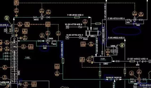 带控制点的工艺流程图也称管道及仪表流程图。从这张例图中,我们可以看出,PID图由设备、管道、仪表三部分组成,让我们分别来看一下,这三部分应该如何视图,常用图例又有哪些。
