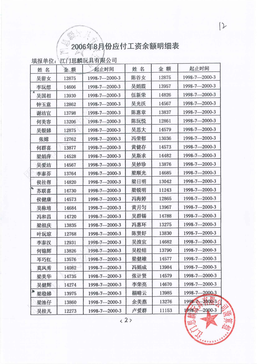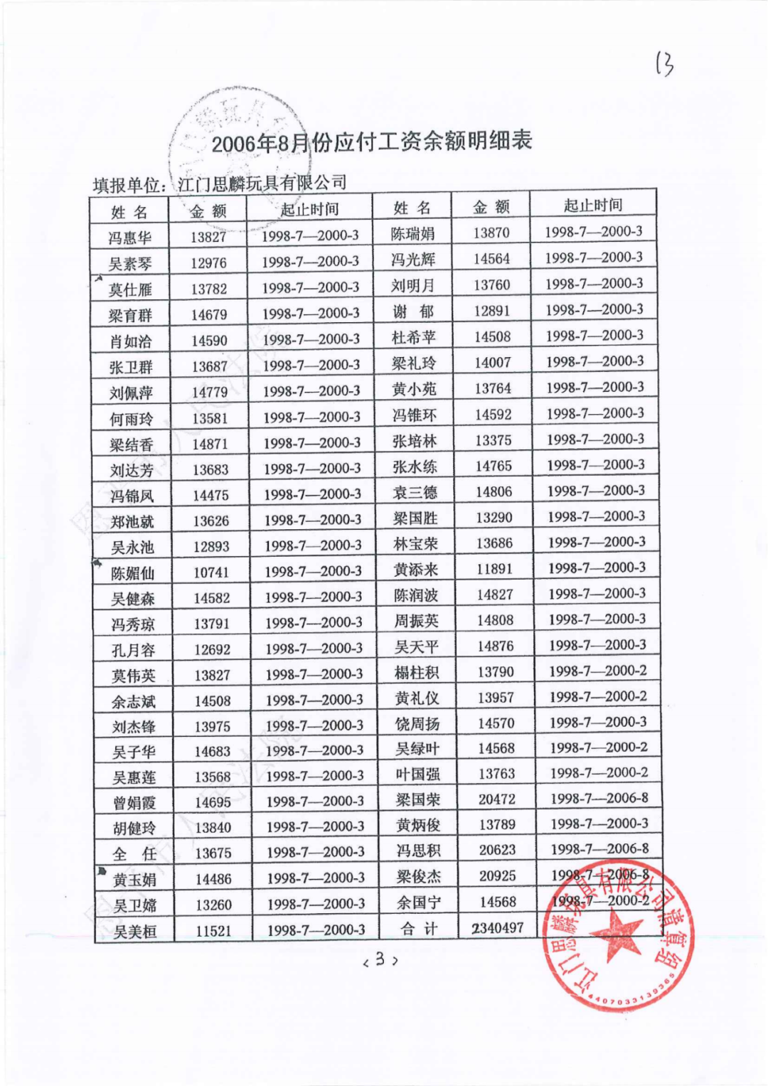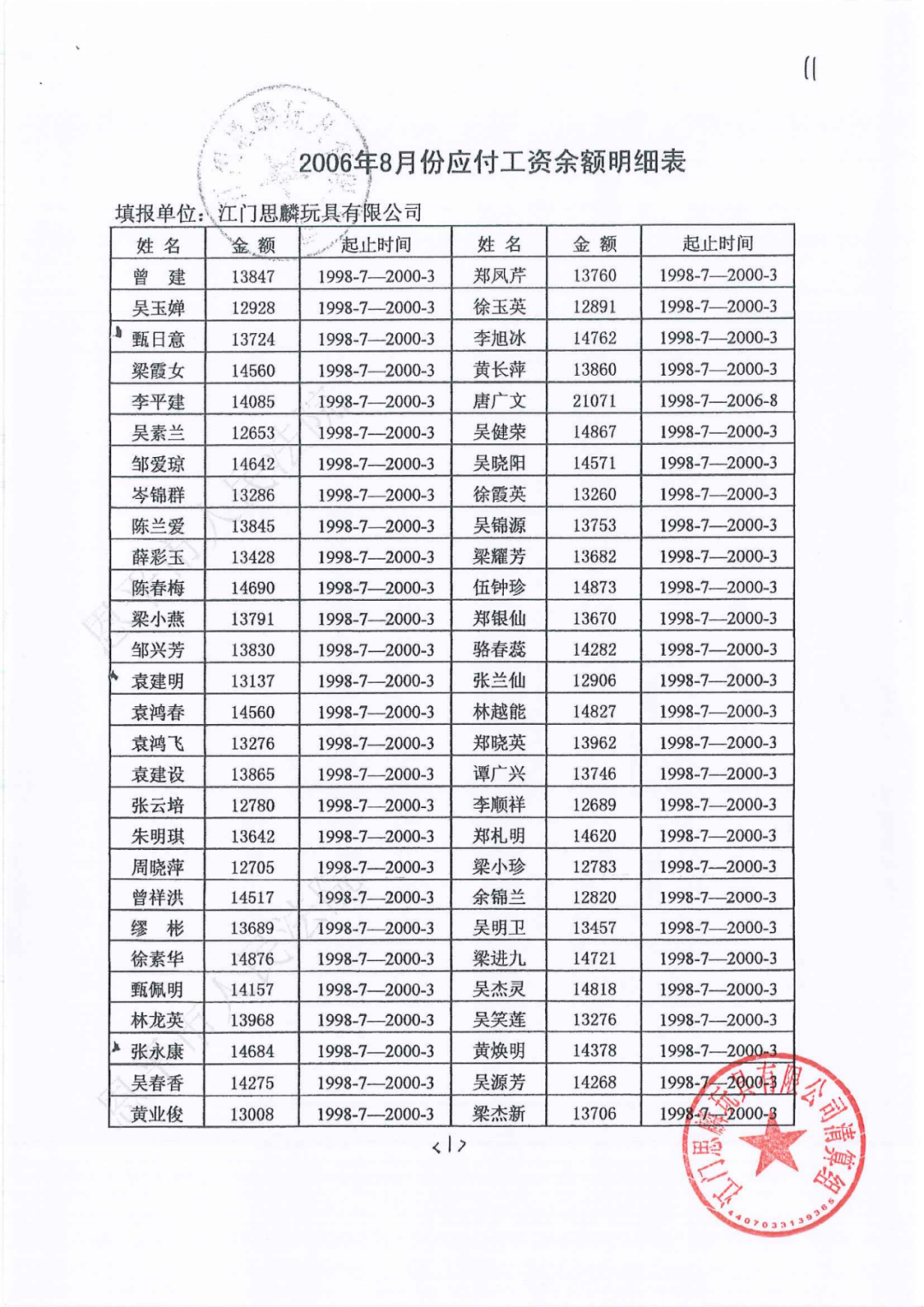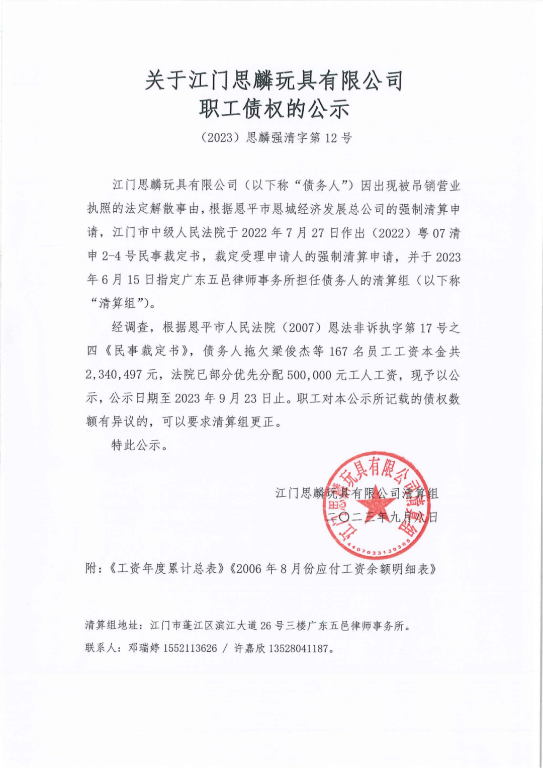 职工债权公示 | | 关于江门思麟玩具有限公司职工债权的公示