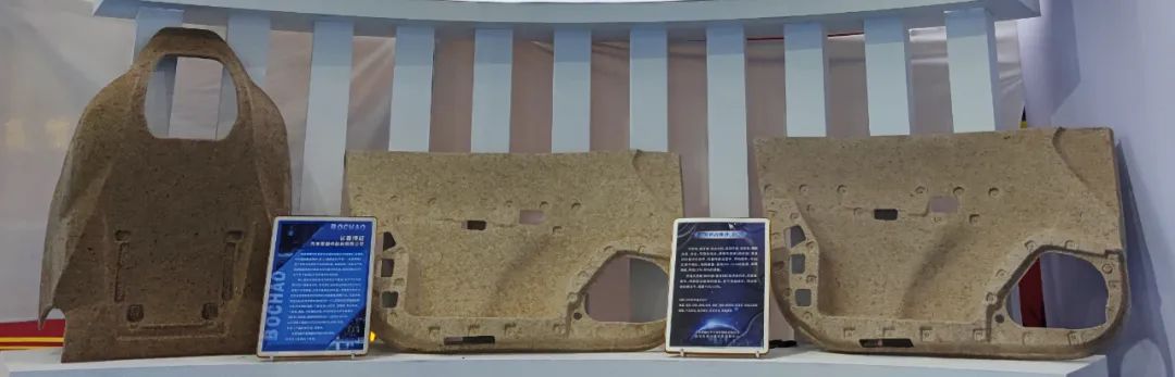 长春博超汽车零部件股份有限公司展出了用麻纤维复合材料制作的汽车内饰件、汽车门板、椅背板等展品。