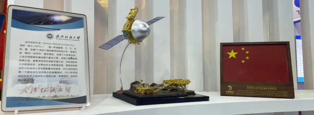 武汉纺织大学展出了嫦娥五号任务月面展示国旗、“天问一号”模型。