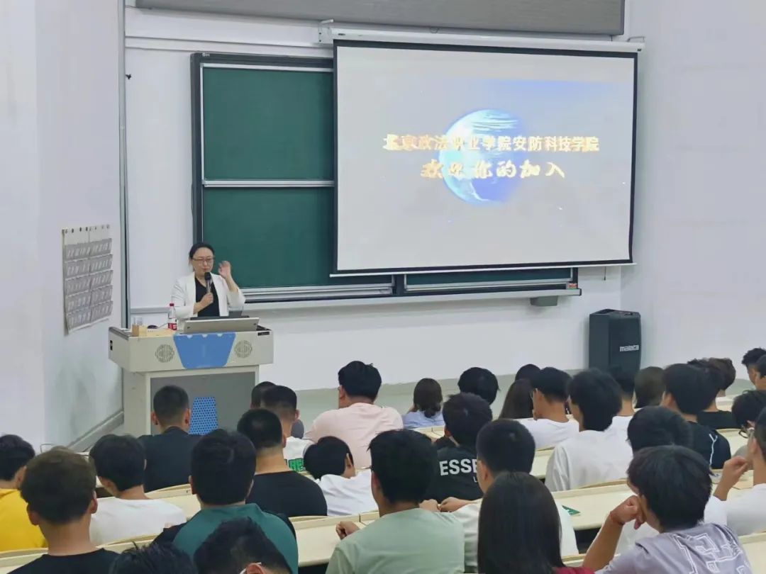 讲座伊始,是播放安防科技学院专业介绍宣传片,一幅幅生动的学习,生活,实践画面,帮助新同学了解所学专业的定位,面向岗位,课程和学习方式,全面介绍了安防科技学院办学特色,激发了新同学对专业强烈的好奇心和自信心。