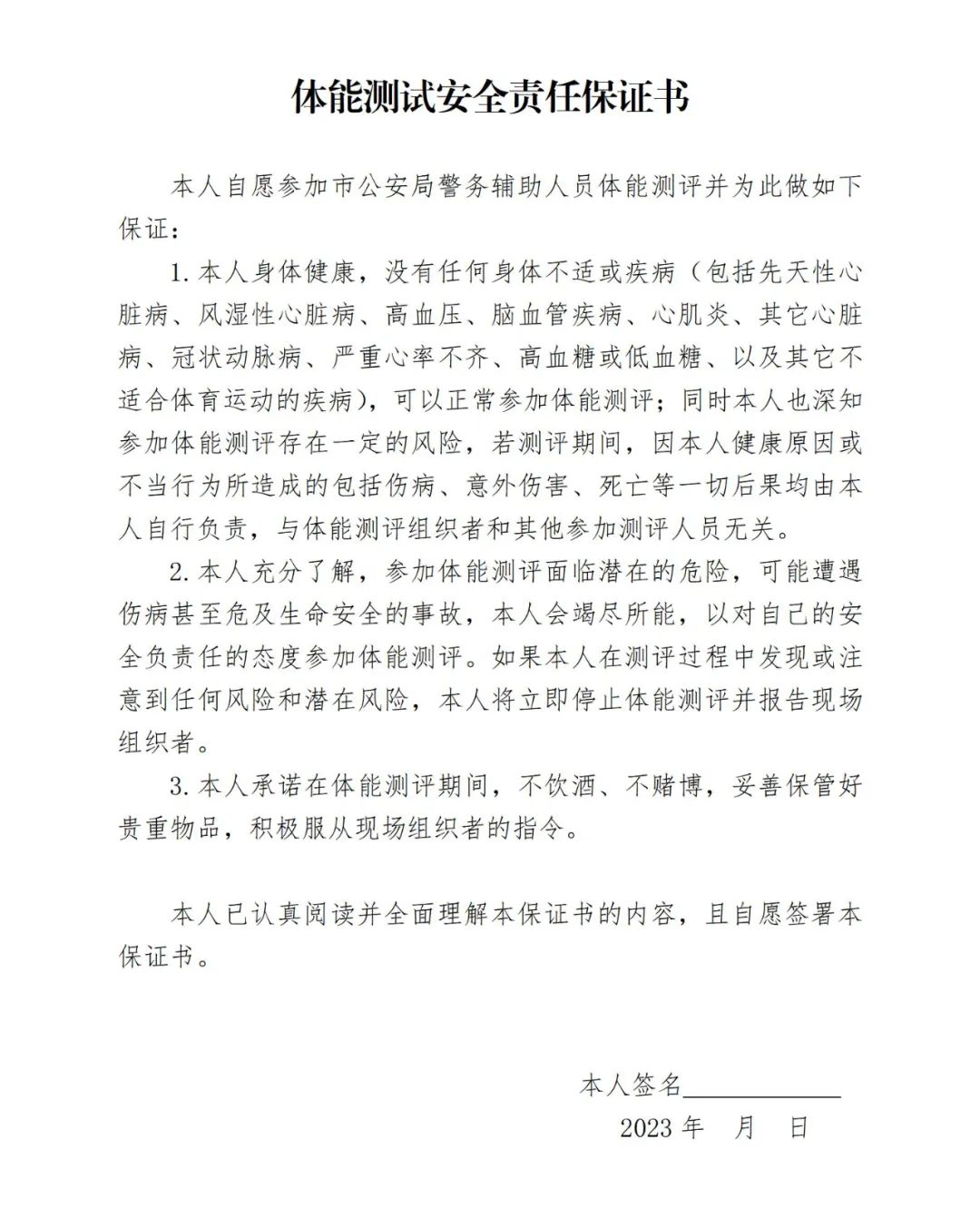 3.体能测试安全责任保证书