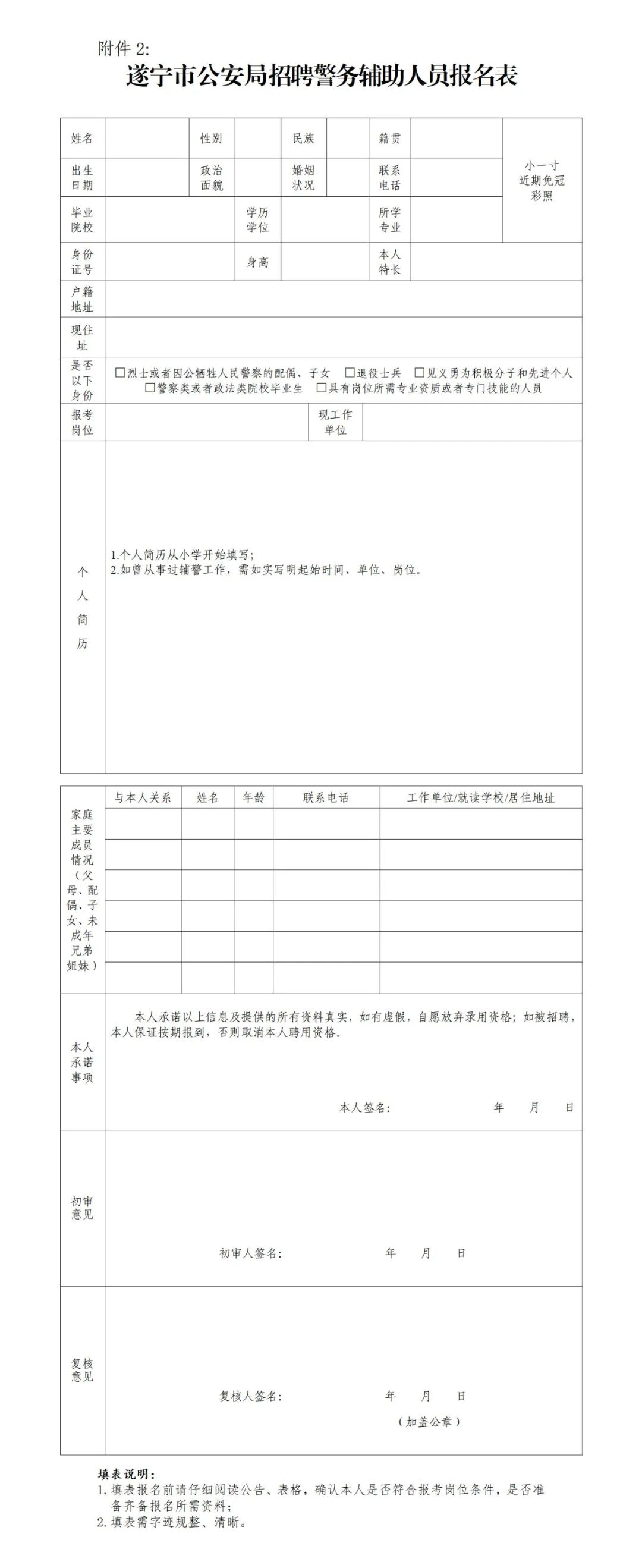 2.遂宁市公安局招聘警务辅助人员报名表